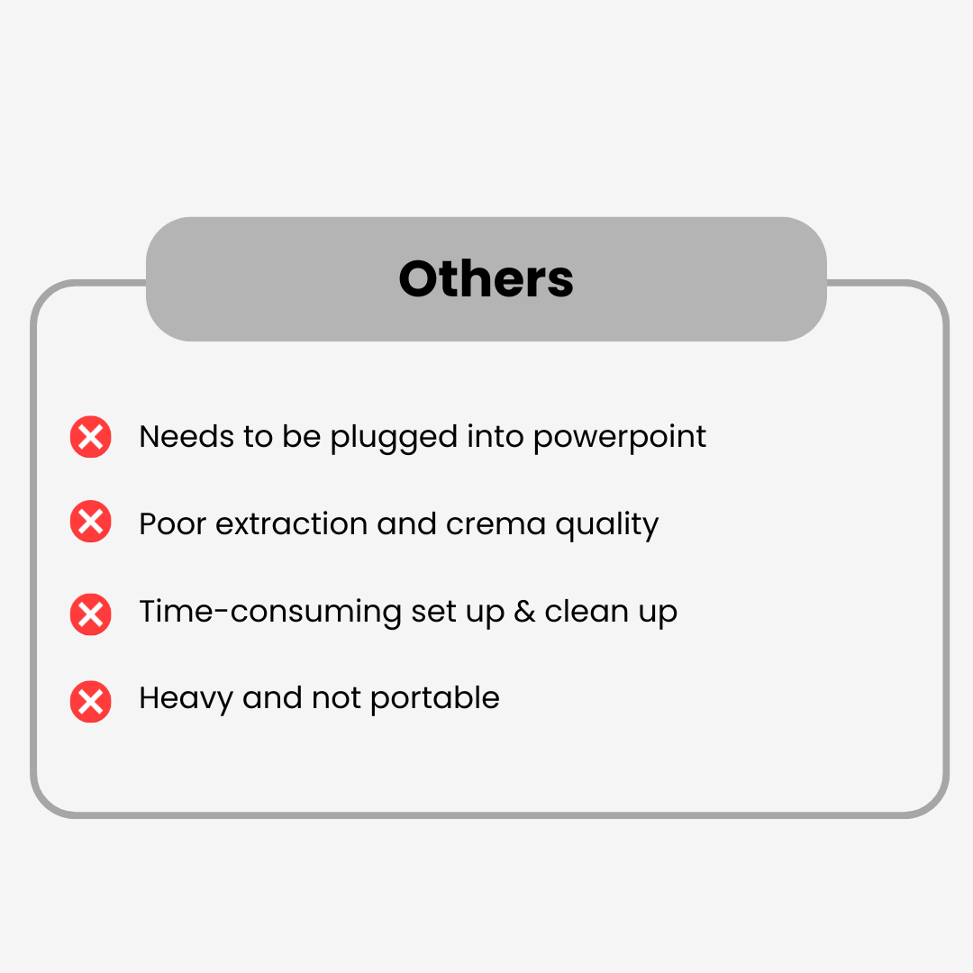 OriPress' basket and portafilter are built together in one piece, making it easier to use and clean.The espresso flows through a single hole, pressurized basket mean you get authentic, cafe-quality extraction every time. Just like a barista makes coffee, OriPress uses this design to give you a smooth, rich espresso wherever and whenever you want.